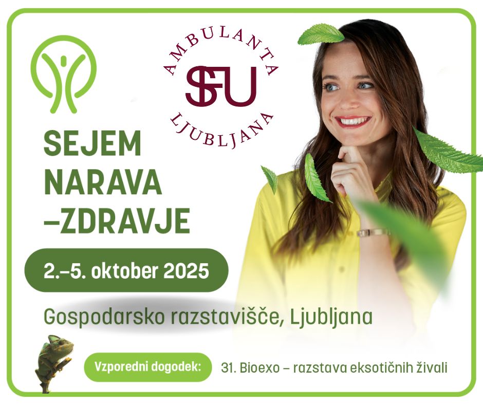 Ambulanta SFU Ljubljana se bo predstavila na sejmu Narava–zdravje, ki bo potekal na  Gospodarskem razstavišču v Ljubljani od četrtka, 2. oktobra, do nedelje, 5. oktobra 2025. Najdete nas v Hali A