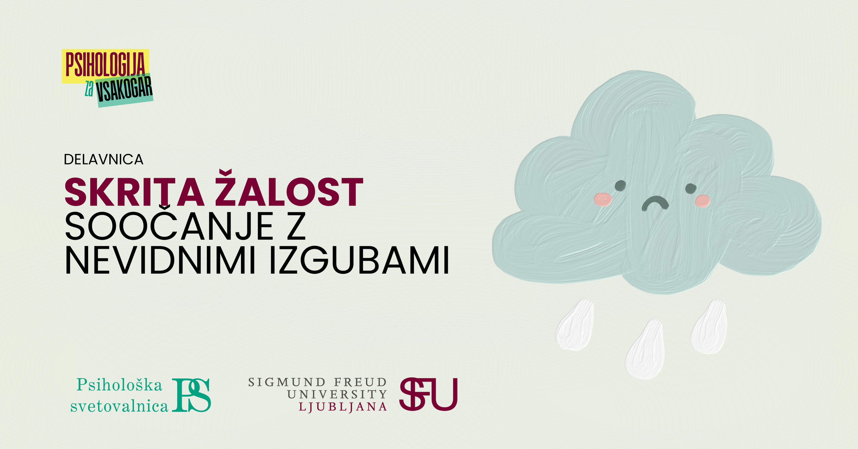 Na prvem tematskem večeru tekočega študijskega leta, ki ga v sklopu »Psihologije za vsakogar« organiziramo na oddelku za Psihologijo na SFU Ljubljana in v okviru Psihološke svetovalnice, bomo gostili naša študenta psihologije Zojo Katarino Hlebec in Filipa Lazarja, ki bosta pod mentorstvom predavatelja Jana Kovačiča, psihologa, coacha in specializanta transakcijske analize, pripravila izkustveno delavnico na temo žalovanja.