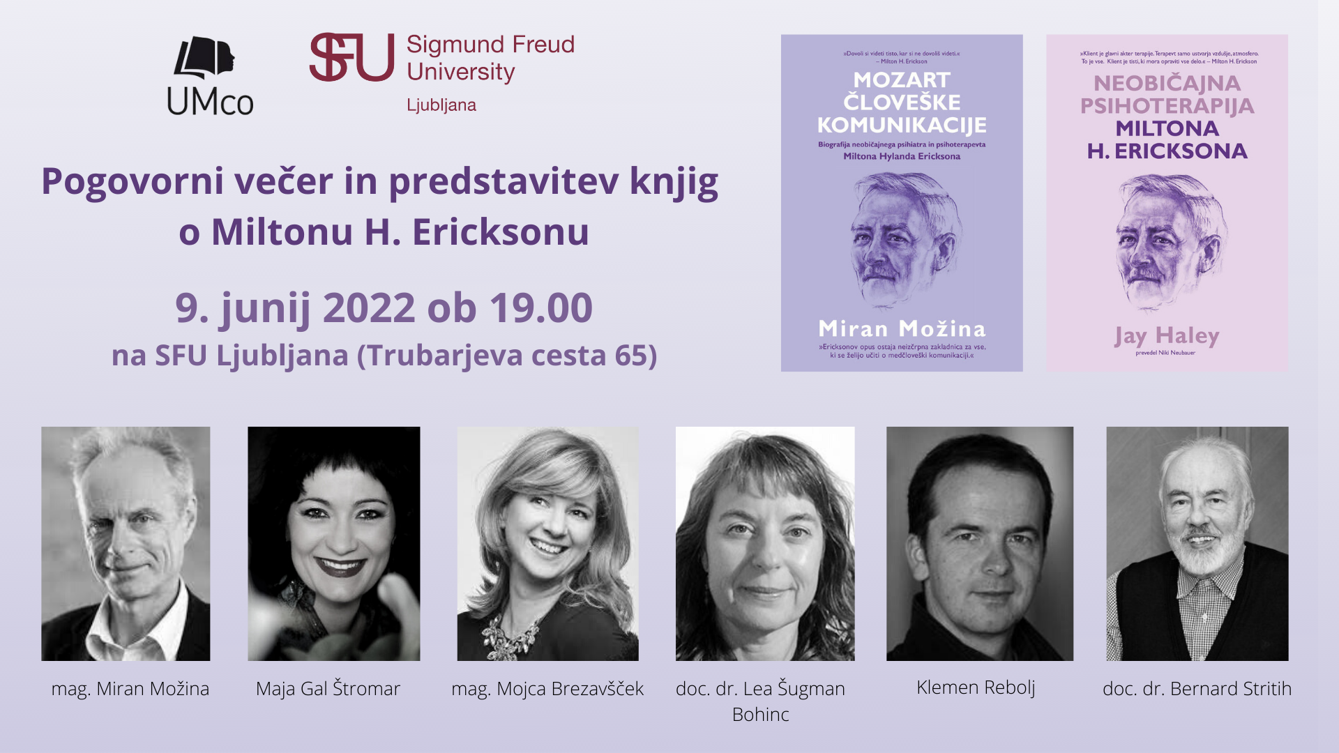 Vabljeni na dogodek 9. junija 2022 ob 19.00 na SFU Ljubljana, na okroglo mizo posvečeno pogovoru o Miltonu H. Ericksonu in predstavitvi novih knjig o tem znanem ameriškem psihiatru in psihoterapevtu: