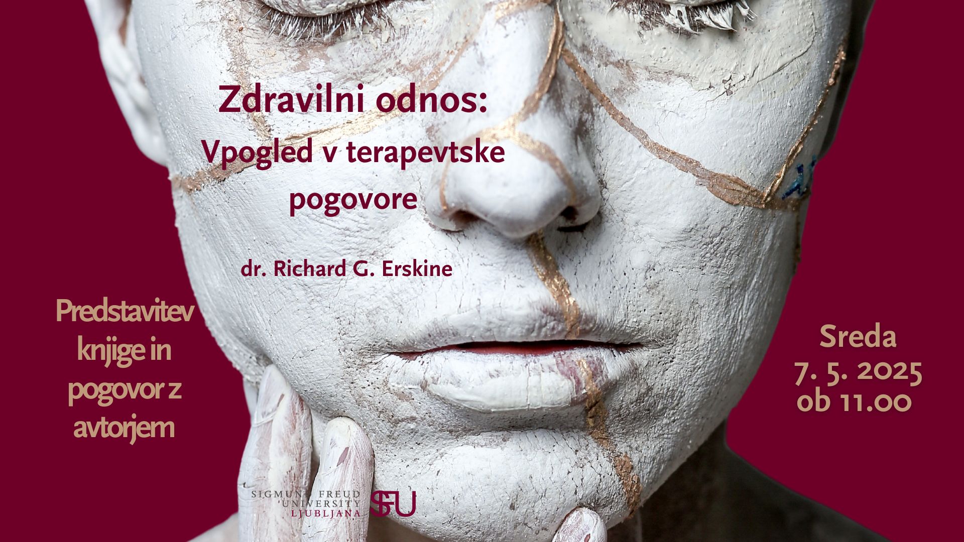 Z veseljem vas vabimo na predstavitev slovenskega prevoda knjige dr. Richarda G. Erskina z naslovom Zdravilni odnos: Vpogled v terapevtske pogovore (A Healing Relationship: Commentary on Therapeutic Dialogues), ki bo potekala v sredo, 7. maja 2025, ob 11. uri na SFU Ljubljana. Ponosni smo, da se nam bo pridružil tudi dr. Erskine, ki bo predstavil knjigo, zato bo dogodek potekal v angleškem jeziku. Kot gostja se mu bo pridružila doc. dr. Anja Štrukelj Kozina, dogodek pa bo povezovala študentka SFU Ljubljana in prevajalka knjige, Živa Malovrh.