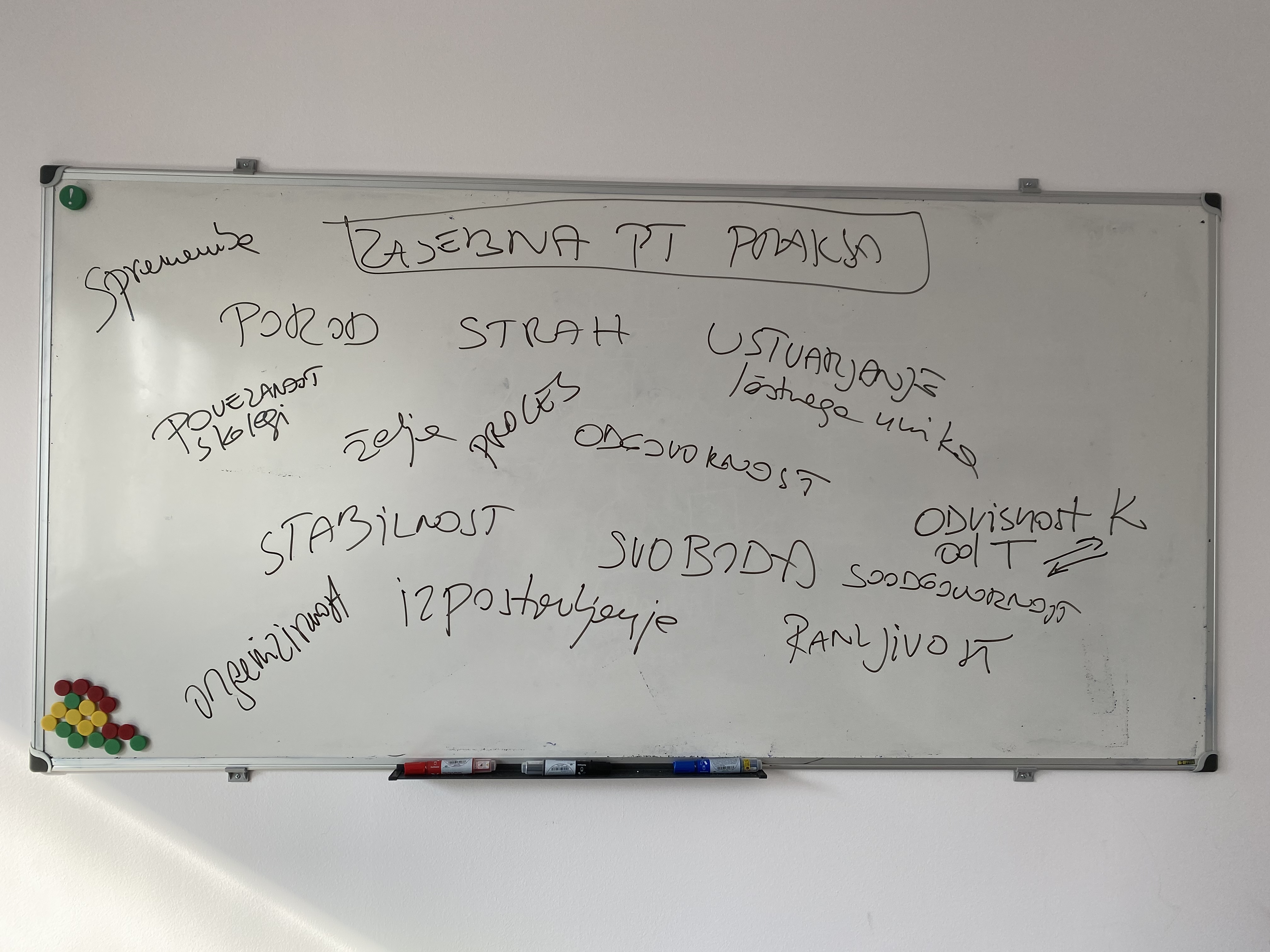 Na tablo smo zapisali tudi naše asociacije na lastno psihoterapevtsko prakso, o katerih smo poklepetali v sklopu Majine predstavitve.