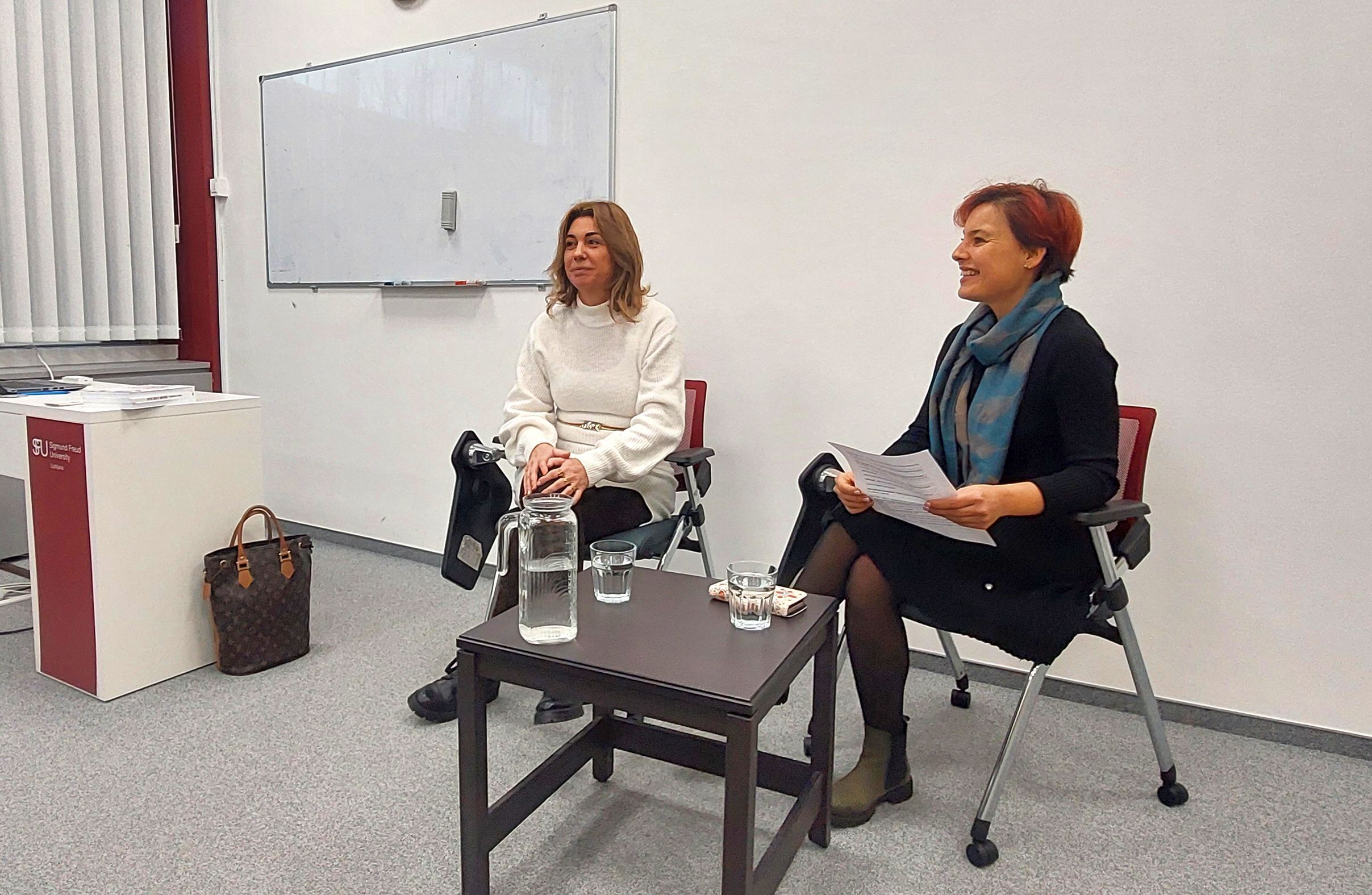 Študentje so bili deležni sproščenega pogovora, ki ga je vodila študentka Ajša Karaali. Razprava je obravnavala tudi vlogo coachinga, pri čemer je Meta Grošelj, kot predsednica Slovenskega coaching združenja, poudarila prepletenost psihologije in coachinga ter osvetlila pomembnost pozitivne komunikacije za osebni in profesionalni razvoj.
