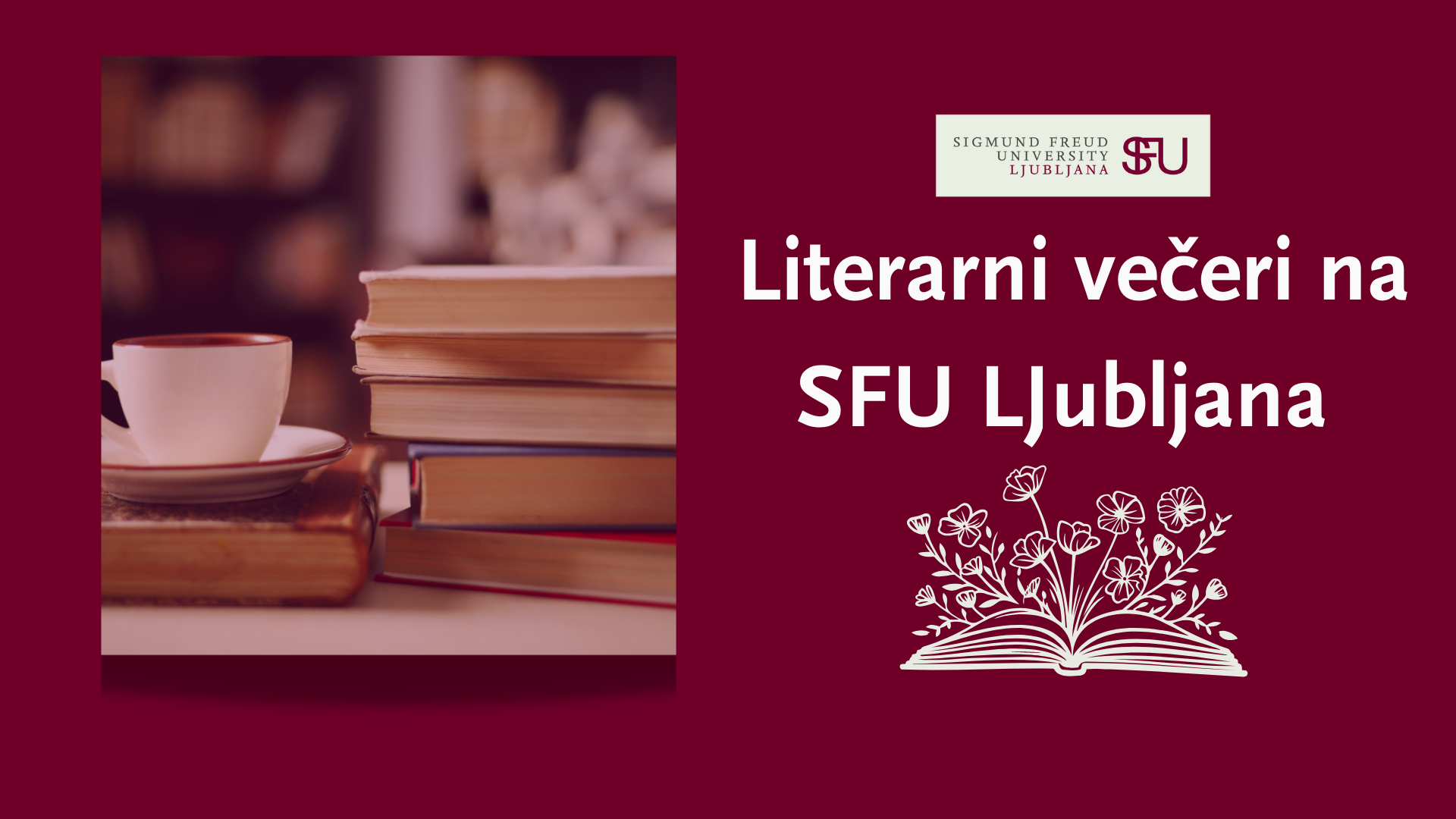 Na SFU Ljubljana z veseljem napovedujemo serijo brezplačnih literarnih večerov, ki bodo potekali vsaka dva meseca in združevali ljubezen do knjig s pogledom v globine človeške duševnosti. Vsak dogodek bo posvečen izbrani knjigi – skupaj se bomo poglobili v zgodbo, ozadje njenega nastanka in osebnost avtorja. Knjižne večere bo povezoval David Martek, študent psihoterapevtske znanosti na SFU Ljubljana, ki bo vodil pogovore z avtorji, pisatelji in strokovnjaki s področja psihologije in psihoterapije. Gostje bodo občutljive teme knjig osvetlili tudi skozi psihološko prizmo, pojasnili različne čustvene dinamike ter pomagali razumeti stiske in življenjske situacije, ki jih literatura odpira.