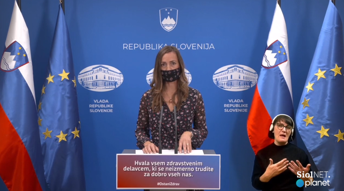 Na novinarski konferenci o aktualnem stanju glede bolezni covid-19, 13. 11. 2020, so spregovorili minister za infrastrukturo Jernej Vrtovec, vodja oddelka Intenzivne terapije Infekcijske klinike UKC Ljubljana Matjaž Jereb, vladni govorec Jelko Kacin in tudi psihologinja in psihoterapevtka doc. dr. Andreja Poljanec, vodja študijskega programa Psihologija na SFU Ljubljana.