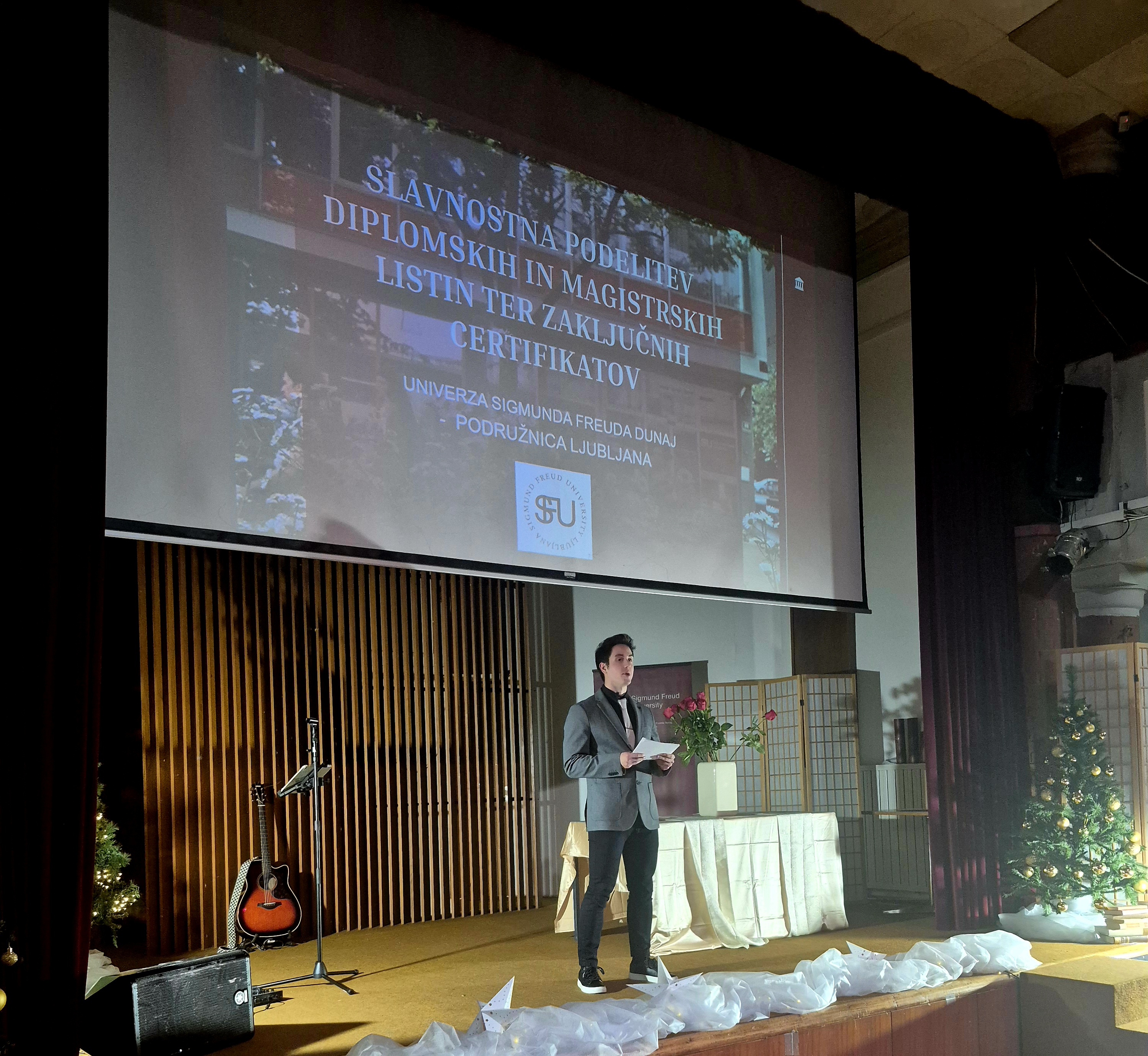 Slavnostno podelitev je povezoval Žan Leiler, študent 3. letnika dodiplomskega študija psihologije, z glasbenimi vložki pa jo je obogatila pevka Sarina.