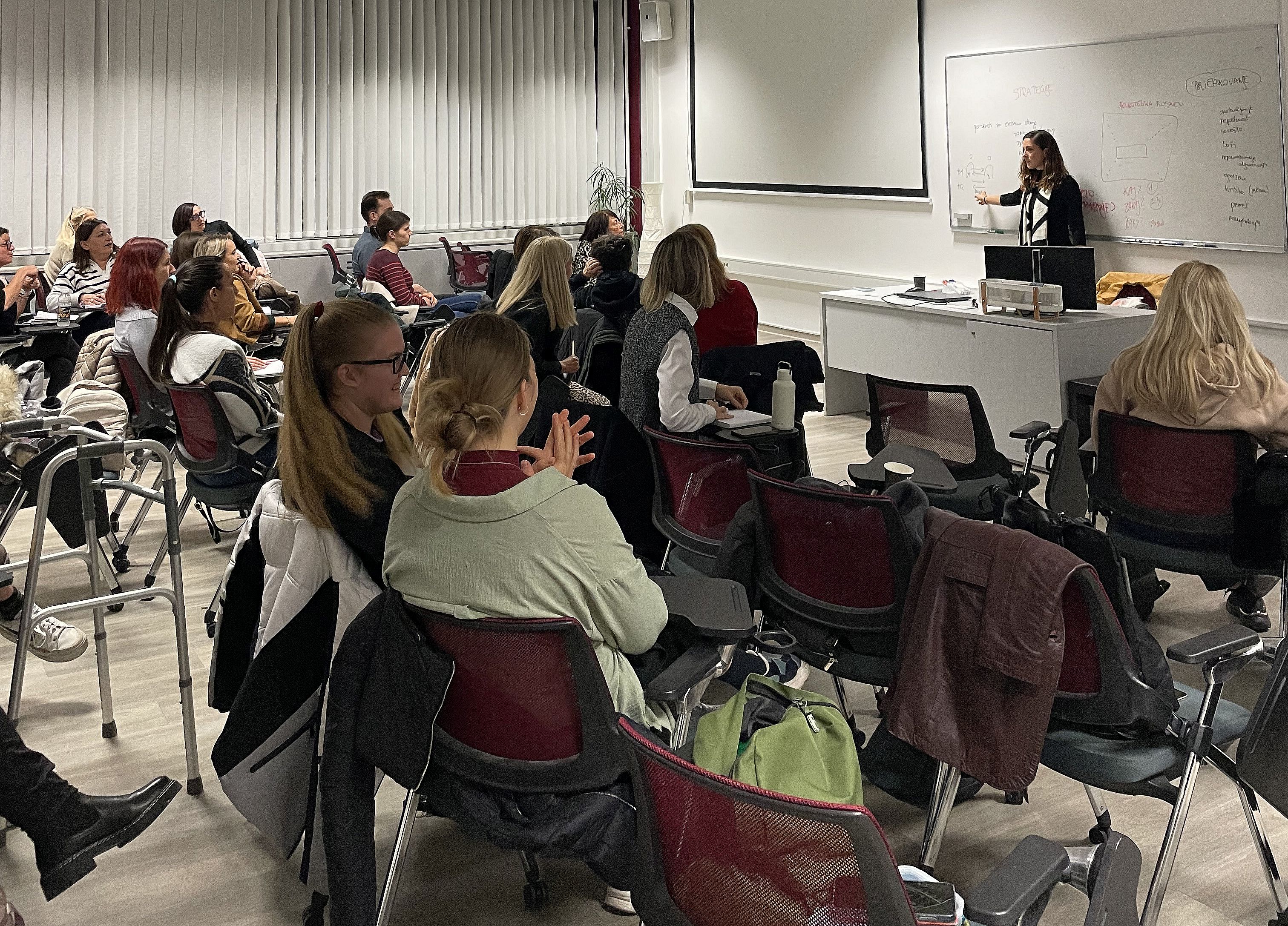 V torek, 11. novembra 2025, so udeleženci v okviru sklopa Psihologija za vsakogar prisluhnili interaktivnemu predavanju dr. Sabine Đuvelek, organizacijske psihologinje in performance coachinje, ki se ukvarja z razvojem zaposlenih ter ustvarjanjem okolij za stalno rast.